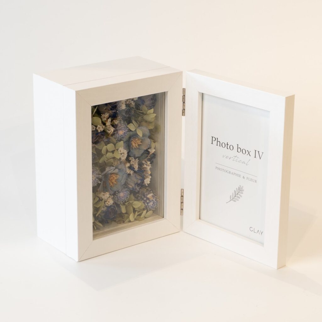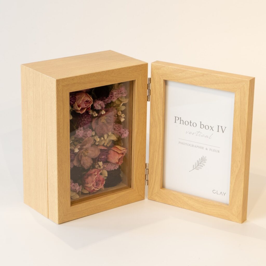片面にはドライフラワーをあしらい、もう片面にはお気に入りの写真を飾ることができます。