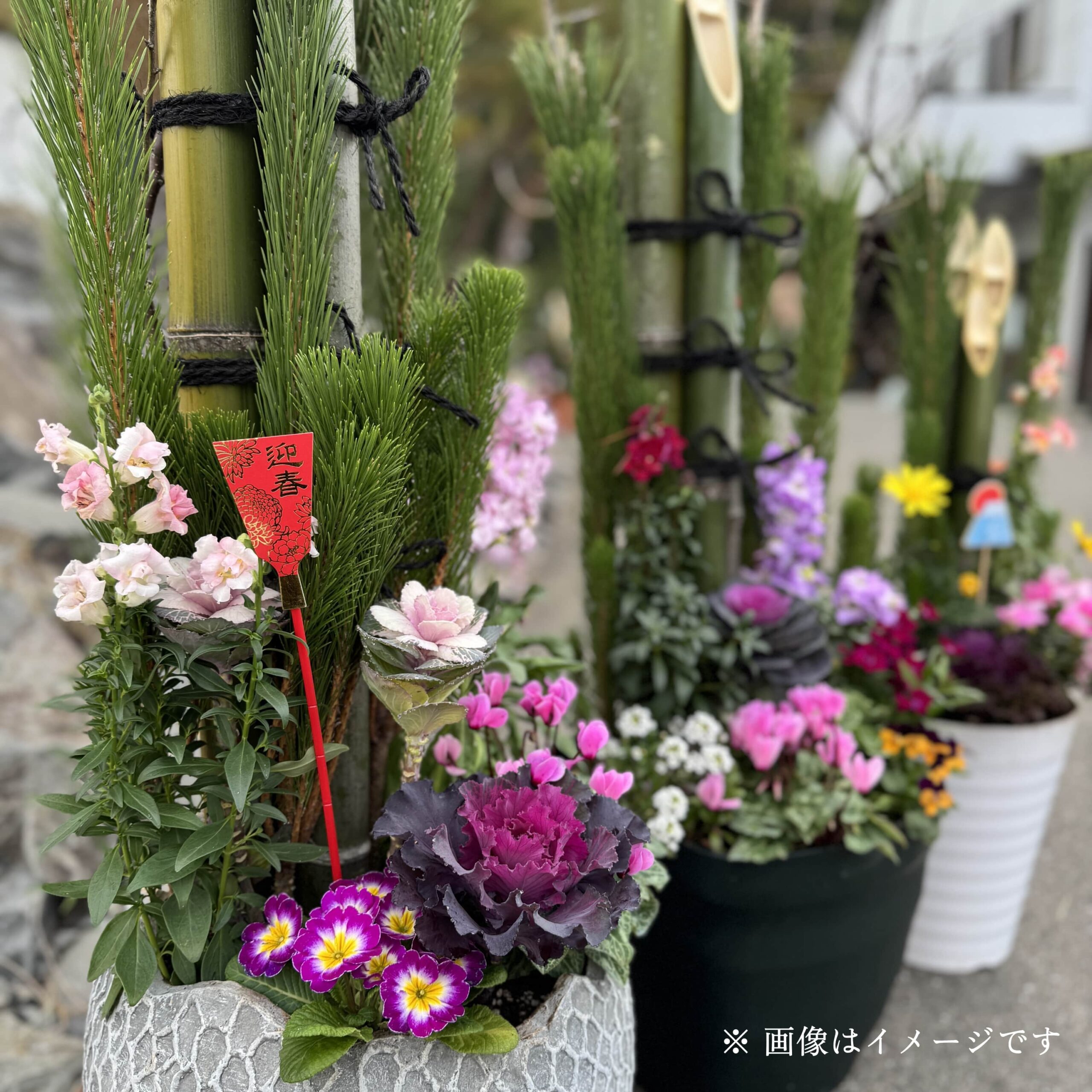 松竹と季節の草花をあしらった、彩り豊かな門松アレンジをご用意しました。